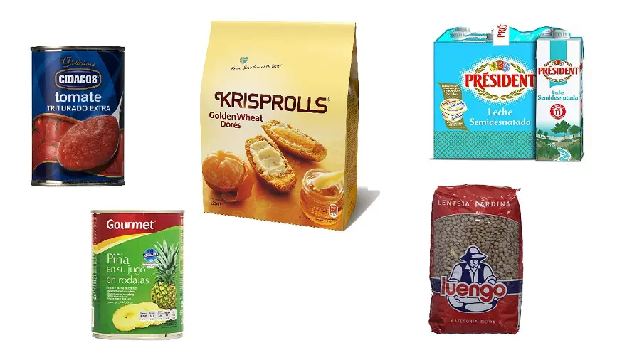 Entre los productos no perecederos destacamos productos en conserva, legumbres, pastas, leche, salsas de tomate, productos deshidratados como sopas en polvo, cremas, café, azucar, aceites,… entre otras opciones.