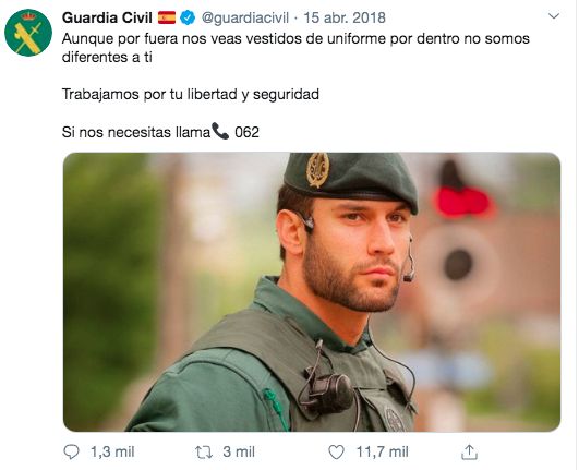 Su físico ya llamaba la atención desde el principio del concurso y ha sido calificado como «el guardia civil más guapo de España». Jorge Pérez se convirtió en celebrity después de que La Guardia Civil publicase, en su cuenta oficial, un tuit con su foto, y una frase que pretendía favorecer un acercamiento entre los ciudadanos y el cuerpo: «Aunque por fuera nos veas vestidos de uniforme por dentro no somos diferentes a ti». El mensaje puede que calase, pero la foto sí que fue todo un éxito, al menos para el guardia civil, que en seguida fue contactado (y contratado) por una agencia de modelos.