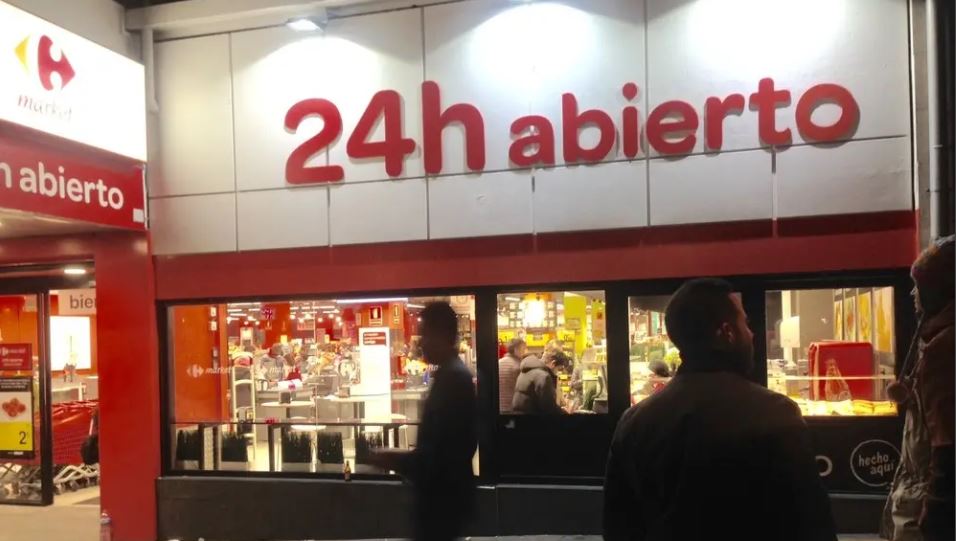 El supermercado francés ha sido uno de los primeros en apostar por el supermercado abierto las 24 horas y los 365 días del año en España. Ya hay varios supermercados en Madrid que abren todos los días, algo que han agradecido los trabajadores de hostelería que salen a hacer la compra muy tarde.