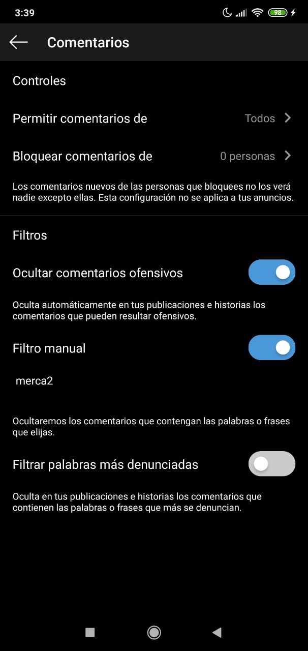Si tienes una cuenta profesional, podrás filtrar y controlar los comentarios que te hacen. Esto es muy útil si tienes un perfil público abierto y recibes muchos comentarios negativos o amenazas.