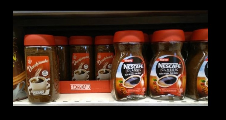 El café Nescafé es el más famoso, y no sólo por el famoso sueldo para toda la vida que reparte, sino también por su sabor y su particular envase. El supermercado valenciano tiene una versión más económica del mismo, que trata de imitar su envase, imitando incluso la mítica taza de café, aunque de otro color.