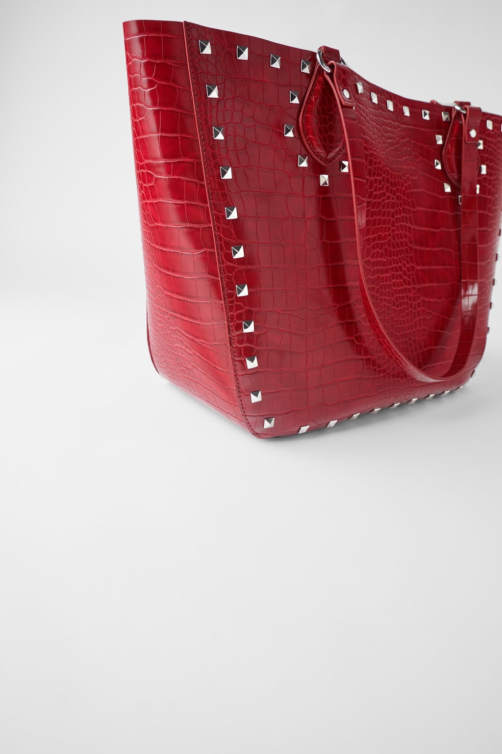 Aunque el diseño es clásico, en Zara han sabido sacarle partido, y ha sido hecho con estampado animal y detalles de tachuelas. Asas de hombro y una bolsa interior con el mismo estampado y color rojo. De tener un precio de 25,95 euros, ahora cuesta 15,99 euros.