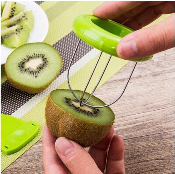 Aunque no sea tan práctico como el de Juan y Medio, el pelador de kiwi te permitirá extraer toda la pulpa del kiwi sin apenas esfuerzo. Solo lo debes cortar por la mitad con un cuchillo, introducir los alambres del pelador haciendo presión, y te retirará la cáscara con dar una vuelta, así como cortar el kiwi en 8 trozos listos para comer…