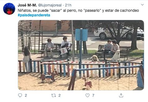 Incapaces de quedarse en casa y renunciar a la diversión, se les ha visto, desde que se cancelaron las clases, compartiendo botellón, de fiesta con amigos o agrupados en la calle de charla durante horas. Ahora, la excusa de sacar al perro, es perfecta para quedar y apalancarse en el parque para fumar y pasar el rato. Entendemos que a algunas edades, aguantar a los padres puede ser un infierno, pero esto es una situación de responsabilidad pública.