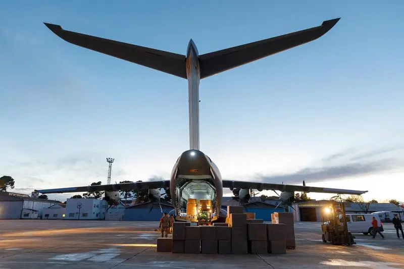 El martes, un avión A400M entregó la primera carga al Ministerio de Defensa en la Base Aérea de Getafe (Madrid) a las 19.05 horas.