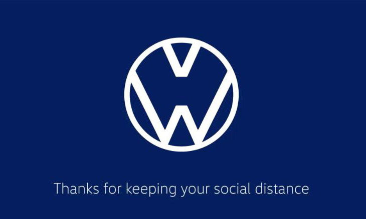 A través de un vídeo de menos de un minuto, la compañía ha difundido en sus redes sociales han querido transmitir un mensaje de unidad ante la crisis sanitaria que afecta a todo el mundo. Agradecen a la población mantener la distancia para evitar contagios y frenar la crisis. Y para ello, su estrategia publicitaria conlleva separar la V de la W que componen la enseña de su marca de automóviles.