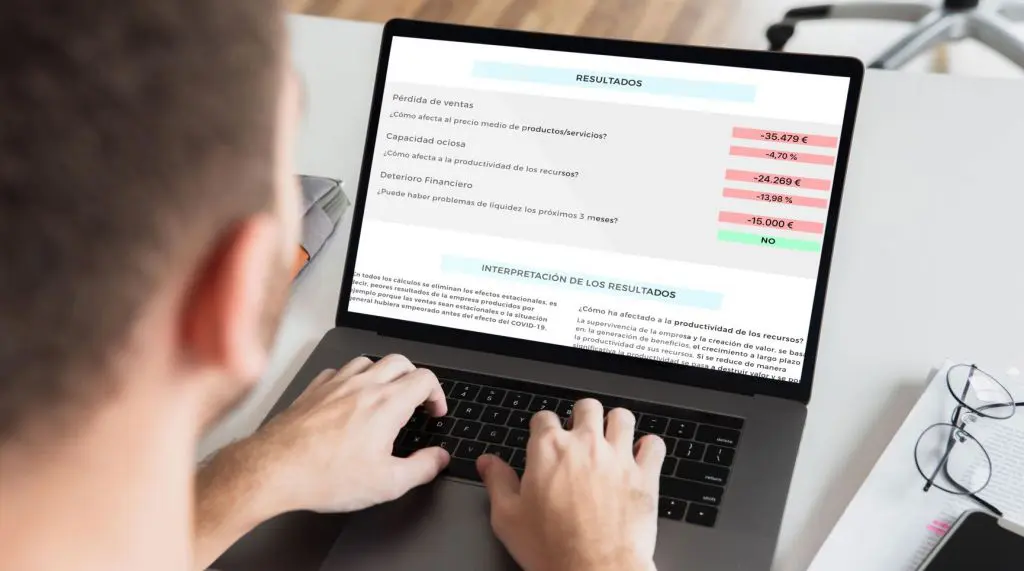 Los resultados de la calculadora online se dividen en pérdida de ventas, capacidad ociosa y deterioro financiero con una orientación sobre la caída de la productividad y los posibles problemas de liquidez para los próximos tres meses.