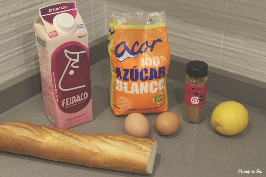 Necesitarás una barra de pan del día anterior, un litro y medio de leche entera, 5 huevos medianos. También un palo de canela en rama, 1 vaina de vainilla y la cáscara de medio limón, si puede ser sin la parte blanca mejor, ya que esta amarga. 100 ml de vino de Oporto, 300 gramos de azúcar blanco, 1 cucharada de canela molida y 1/2 litro de aceite de oliva virgen extra suave.