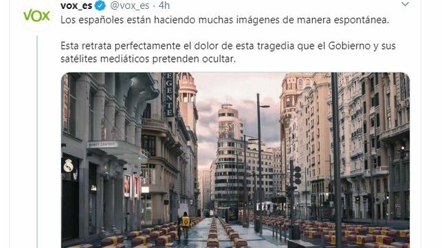 Esta también se caracteriza por buscar la viralidad a través de prácticas, cuanto menos, cuestionables. No obstante, parece que una de sus últimas publicaciones ha dado aún más de qué hablar después de que el autor de la foto protagonista del mensaje denunciara el robo y la manipulación de la misma con fines no muy éticos. La polémica en cuestión viene a raíz de que la cuenta publicara una imagen de la Gran Vía madrileña vacía sobre la que crearon un montaje con largas filas de ataúdes colocadas en línea y cubiertas con la bandera de España.