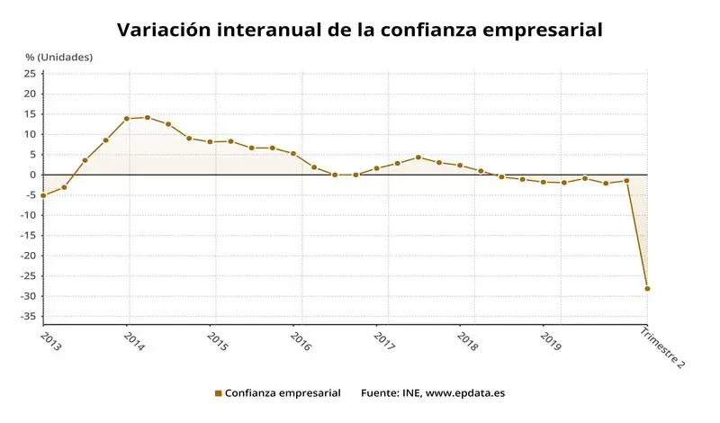 El Indicador de Confianza Empresarial Armonizado (ICEA), cuya publicación corresponde al Instituto Nacional de Estadística (INE), se desplomó un 26,9% en el segundo trimestre de este año en relación al trimestre anterior, hasta situarse en los niveles más bajos de la serie, iniciada en 2013.