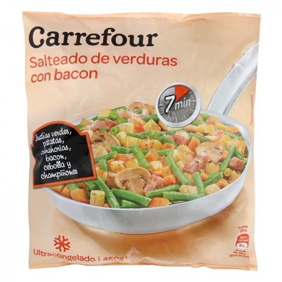 Antes he mencionado varias verduras de Carrefour, como las judías verdes. El problema es que esas verduras requerían una elaboración, porque no venían con nada más. Por eso ahora te traigo este salteado de verduras con bacon, el cual es calentar en 7 minutos y listo para comer.
