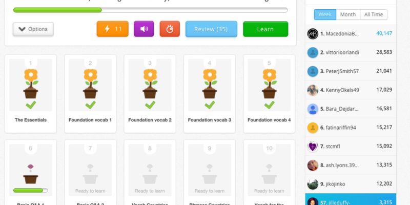 Pero todas las lecciones son bastante intuitivas y permite aprender pronunciación, escritura y vocabulario de forma gamificada. Ofrece también algunas herramientas interesantes para crear cursos personalizados y tiene una gran comunidad.