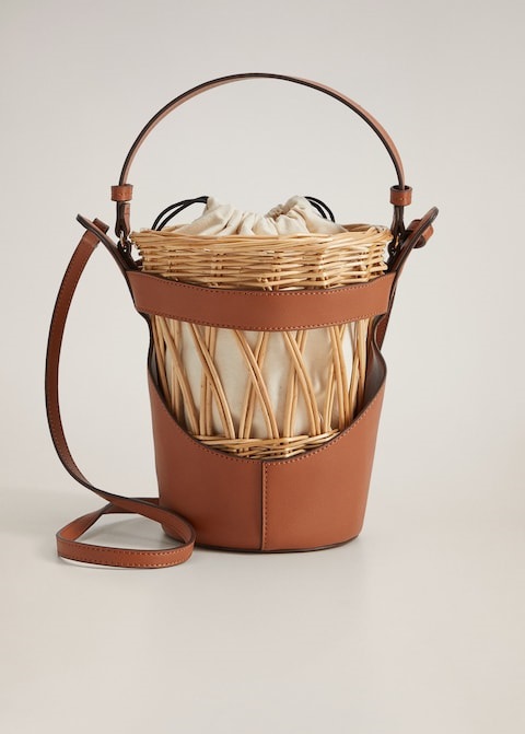 Uno de los bolsos más curiosos que encontramos esta temporada en el catálogo de Mango. Este modelo incluye en su diseño madera de sauce y algodón. Y para darle mayor seguridad, lleva un cierre de cordón para que puedas guardar tus pertenencias de forma segura.