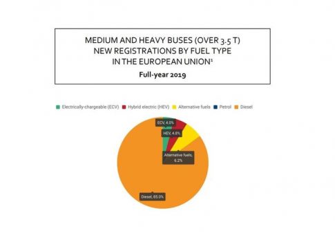 Así, cuatro de los cinco principales mercados de Europa registraron pérdidas de dos dígitos en el segmento diésel: España (-13,8%), Reino Unido (-12%), Italia (-11,8%) y Alemania (-10,1%). Francia fue el único mercado que contabilizó un crecimiento del 2,4% en las matriculaciones de autobuses diésel. En toda la Unión Europea, solo se vendieron ocho autobuses de gasolina en 2019.