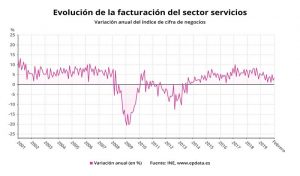 El sector servicios registró un aumento de su facturación del 3,4% el pasado mes de febrero en relación al mismo mes de 2019, tasa 1,2 puntos superior a la de enero, todo ello antes de la crisis del Covid-19 que provocó la declaración del estado de alarma y el cierre de muchas actividades de este sector.