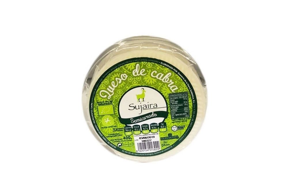 Sujaira vende, a través de los supermercados Aldi, un queso semicurado de cabra muy recomendable. Un queso con un peso de 400 gramos de cultivos ECO con certificado de la UE.