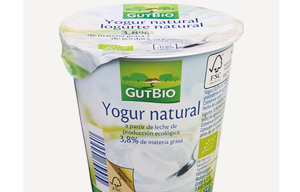 Se trata de la tarrina de la marca GutBio. En este caso también cuenta con la etiqueta certificada por la UE de leche ecológica.