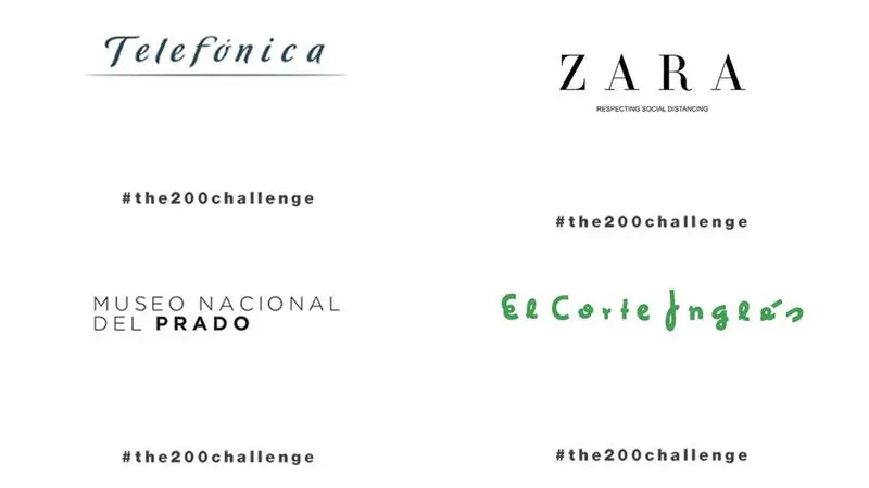 Zara, El Corte Inglés, Iberdrola, Telefónica, L’Oréal, Decathlon o Air Europa figuran entre las más de 1.000 empresas, organizaciones e instituciones de 34 países que se han sumado a #The200Challenge y han modificado temporalmente sus logotipos para concienciar sobre la importancia de mantener la distancia mínima de seguridad personal de 200 centímetros y evitar contagios por el coronavirus.
