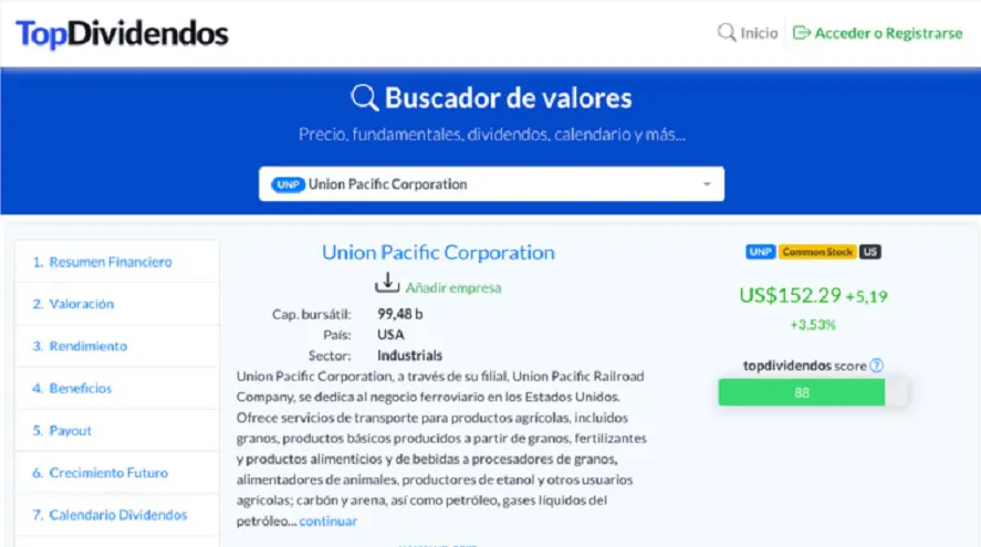 La herramienta es la ofrecida por Top Dividendos y os ofrece muchas, pero muchas cosas, entre ellas, las más importantes son las siguientes: