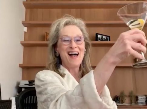En este homenaje participaron un montón de actores y actrices, entre las que destacó este fabuloso trío. Las tres participantes, desde sus casas y en bata, interpretaron el tema ‘Ladies Who Lunch’, a la vez que se servían unos buenos copazos. Ha sido Meryl Streep la que ha acaparado todas las atenciones, por la fama de diva que le precede y que no ha hecho más que confirmarse. Además de hacer gala de sus grandes dotes para la interpretación y el cante, ha demostrado que sabe agitar la coctelera con estilo, y mantener la gracia incluso bebiendo directamente de la botella de whisky.