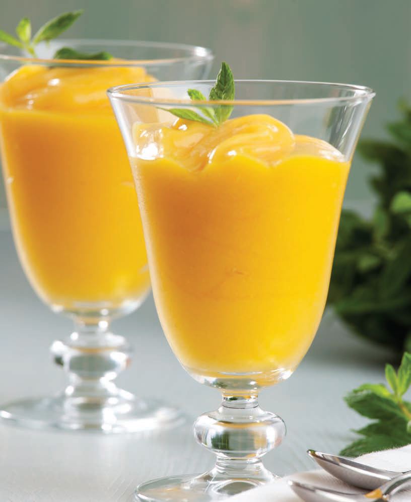 Para esta deliciosa receta se sorbete necesitarás pocos ingredientes. Esta es para esas personas que prefieren sabores un poco más exóticos. Necesitas uno o dos mangos, 500g de hielo, 1 cucharada de zumo de limón y 100g de azúcar.