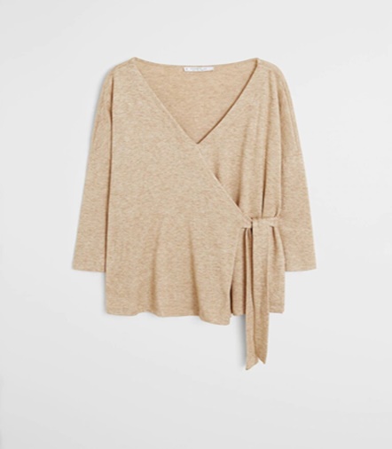 Por ello, y siendo una prenda perfecta para lucirla en todo lugar, servirá para unirla a los pantalones de tejido anteriormente mencionados, lo que te asegurarás que tu ‘look’ se vea llevado al estilo más moderno, así como a la última moda, como es este de Violeta. Hecha con tejido de punto fino, tiene un diseño cruzado y un cierre de lazo lateral; está disponible en Mango en varias tallas.