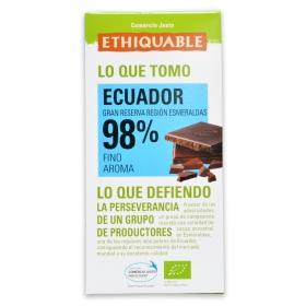 Entre los productos más saludables de Carrefour se encuentra el chocolate negro de Ecuador, y supera con creces a cualquiera de la competencia, según los realfooders más veteranos. Tiene un 98% de cacao, por lo que al principio puede resultar chocante. Es una opción interesante para desintoxicarse del azúcar y aprovechar las propiedades del chocolate, que es rico en antioxidantes y regula los niveles de colesterol. Este de Carrefour además es ecológico y de comercio justo, fabricado con un cacao muy apreciado en el mercado mundial.