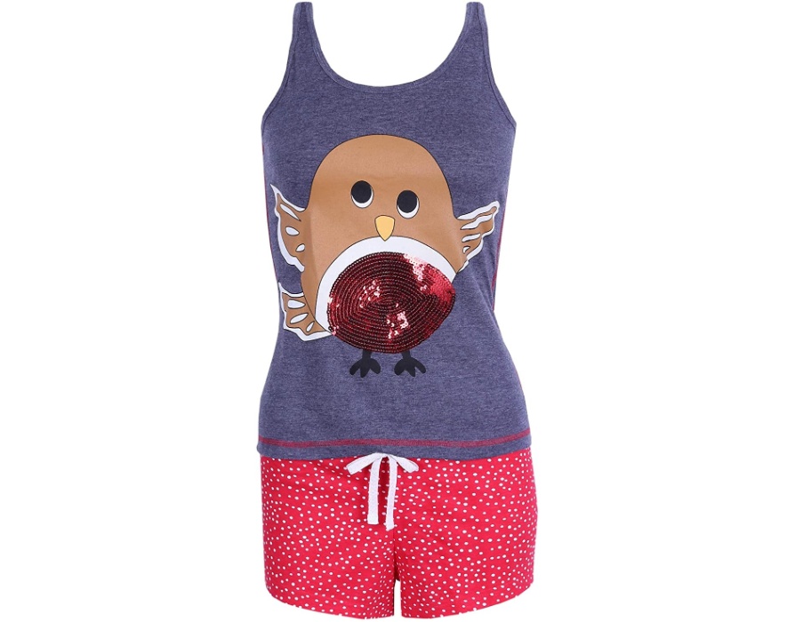 Si tienes prisa, pero necesitas comprar un pijama urgentemente, y eres de Amazon Prime, puedes acceder a la página para comprar este modelo de Primark y tenerlo al día siguiente en casa. Floral en sus pantalones cortos rojos, y lo mejor de todo, el gran búho que hay en su parte superior con su barriga llena de lentejuelas en color rojo. Este modelo puede ser tuyo por 19,99 euros.