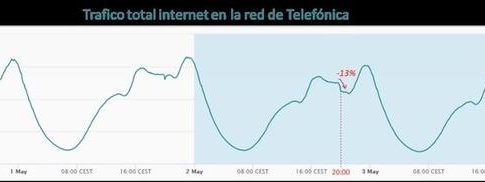 En concreto, los datos proporcionados por la operadora indican que esta bajada del tráfico en su red fija, en la que está incluida el aplauso también a las 20.00 horas, se mantiene hasta las 21.00 horas, para volver a subir a partir de esa hora y recuperar sus elevados valores alrededor de las 22.00 horas.