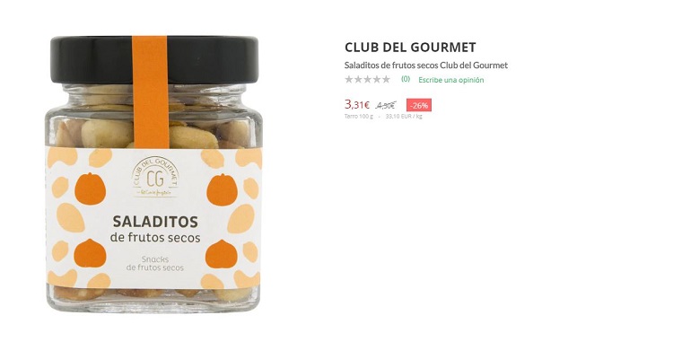 El siguiente en la lista es este surtido de saladitos de frutos secos de El Corte Inglés. Este producto tiene una mezcla de frutos secos como nueces de macadamia, anarcos tostados y almendras marconas. Eso sí, lo que hace que sea un producto especial es que tiene notas de ahumados, tostado en marina de encima y aceite de oliva virgen extra.