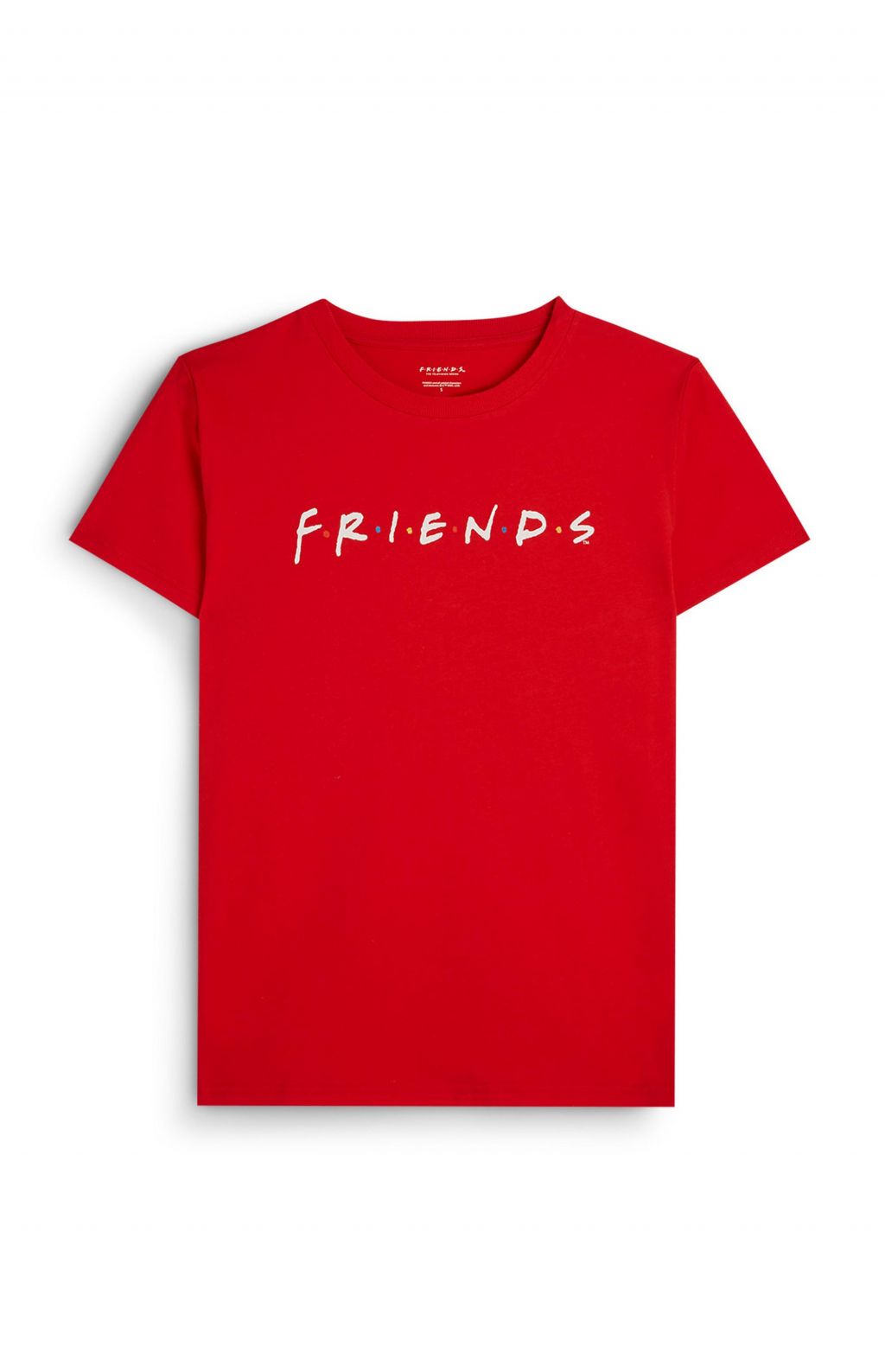 Esta camiseta roja es especial, sobre todo para los fans de la serie Friends. El motivo es precisamente el estampado del logo de la serie en color blanco en la zona de la pechera.