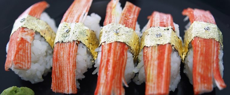 Creado por el chef filipino Angelito Aranera, este sushi es el más caro del mundo, solo apto para millonarios. ¿Cuál es la diferencia entre el de de Angelito y un sushi normal? Pues que este, en vez de estar envuelto con una alga nori tradicional, lleva una delicada lámina de 24 quilates sujeta con un pequeño diamante africano. Curiosamente, el pescado que lleva no es más que surimi. Cada ración lleva cinco piezas y cuesta unos 1.700 euros. El valor gastronómico probablemente sea 0.
