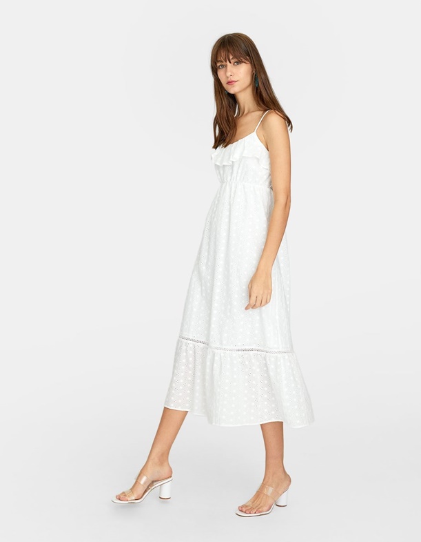 2El original vestido blanco con volantes en el pecho, de Stradivarius