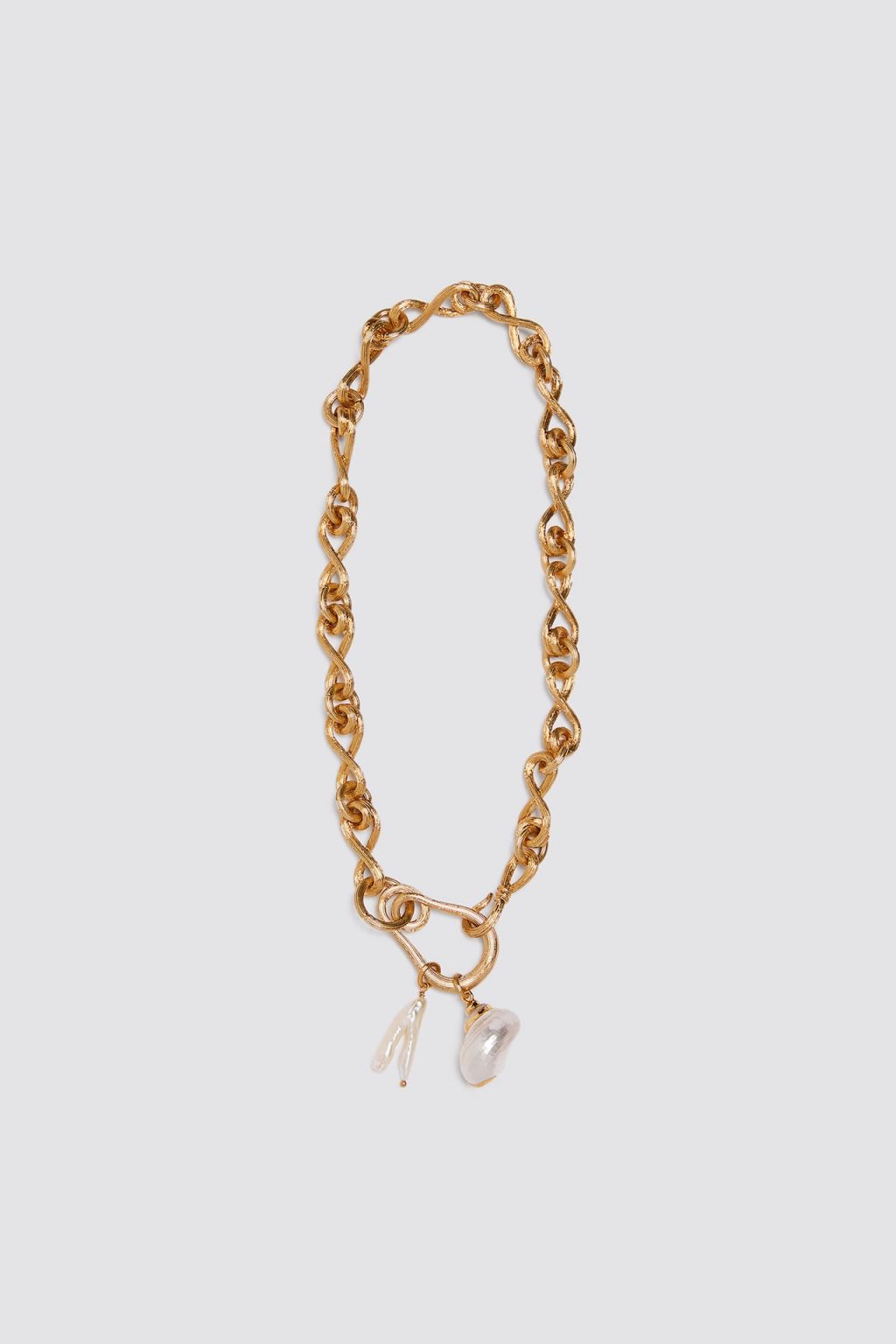 Que no te engañen, los accesorios siempre son los que marcan la diferencia de un outfit, y si quieres disfrutar de un estilo y un estilo completamente diferente al de tu círculo, no dudes en atreverte con complementos de este tipo. Se trata de un collar en tono dorado y entrelazada. Pero lo cierto es que sus colgantes son la mejor parte, y la que consiguen darle su toque personal al look.