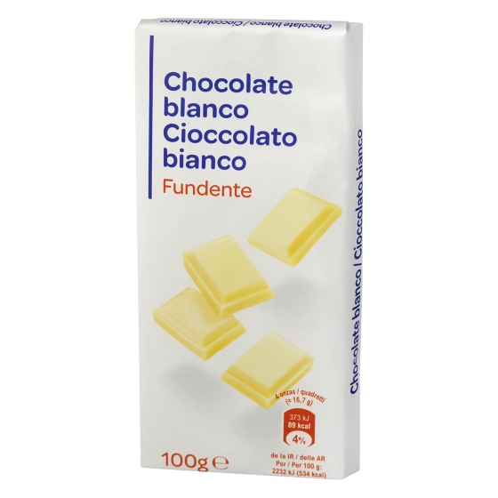 El chocolate blanco del supermercado francés cuesta tan sólo 61 céntimos la tableta de 100 gramos, siendo bastante económico. Por lo demás, es simplemente chocolate blanco, sin florituras, pero con un sabor excelente.