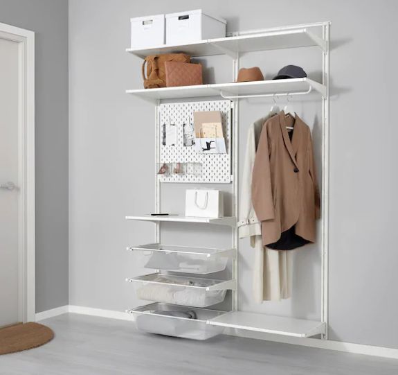El tablero SKÅDIS es genial para tener a mano objetos pequeños como llaves, listas de tareas pendientes, carteras o lo que quieras. En la estantería puedes guardar ropa, complementos, ciertos alimentos o lo que tú consideres que pueda ir allí, tú decides lo que necesitas almacenar.
