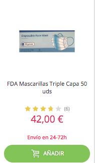 Esta es una marketplace que reúne a multitud de vendedores de artículos de salud, belleza y cuidado personal. Por eso podemos encontrar varias ofertas de distintos proveedores, por ejemplo hay un pack de 50 mascarillas quirúrgicas que cuesta 43€, la unidad a 0,86€. Otra marca ofrece el mismo paquete de 50 a 42€ o sea que la unidad sale a 0,84€.
