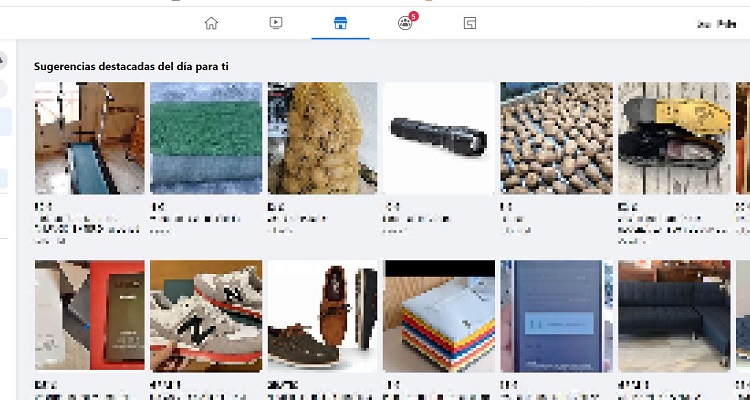 El siguiente icono destacado de Facebook en la barra superior es el del Marketplace. El icono se encuentra en el centro, a la derecha del icono de los vídeos y a la izquierda del icono de los grupos.