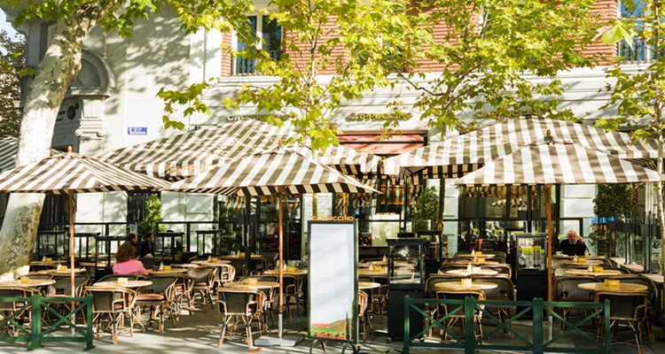 4‘Cappuccino Grand Café’, una de las terrazas de ‘La vida sigue’ situada junto a la Puerta de Alcalá