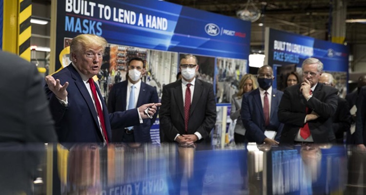 2Trump acudió a la planta de Ford nuevamente sin mascarillas ni material protector