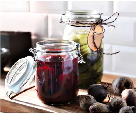 Este tipo de recipientes son imprescindibles en cualquier hogar para un almacenamiento seguro de casi cualquier producto. Podemos usarlos en sustitución a los tuppers de plástico. Este modelo en concreto está fabricado con vidrio reciclado, sin plomo ni cadmio añadido. La tapa lleva caucho natural y el alambre del cierre es de acero inoxidable. Tienen una capacidad de 1 litro, con una altura de 16,5 centímetros y 12 cm de diámetro. Cada unidad tiene un precio de 2 euros.