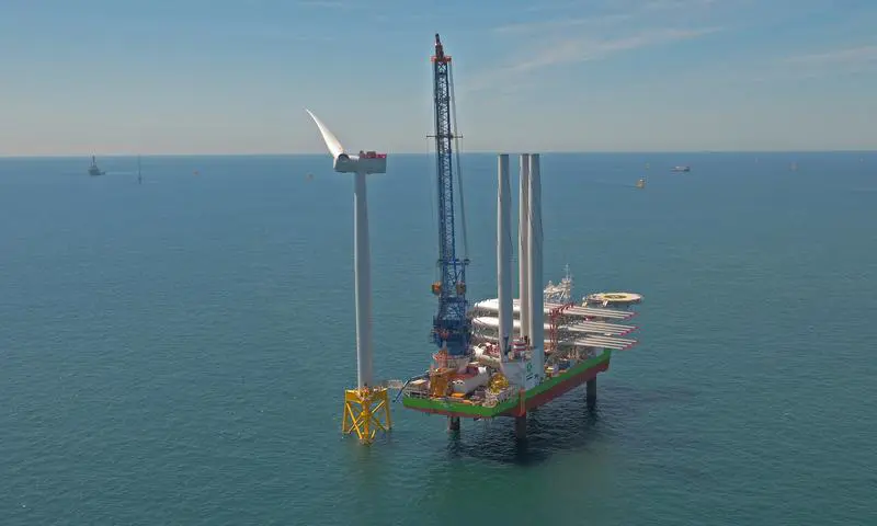 El parque eólico marino de Saint-Brieuc se está construyendo en la bahía de igual nombre en Bretaña, a 16,3 kilómetros de la costa francesa.