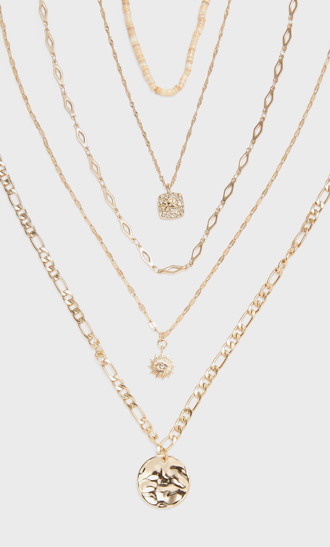 El escote del body de Zara es demasiado cerrado, así que nada como añadir un poco de luminosidad en esta zona con ayuda de un collar. Para esta ocasión hemos elegido este juego de cinco collares charms de Stradivarius, puedes llevar uno cada vez o incluso combinar varios de ellos.