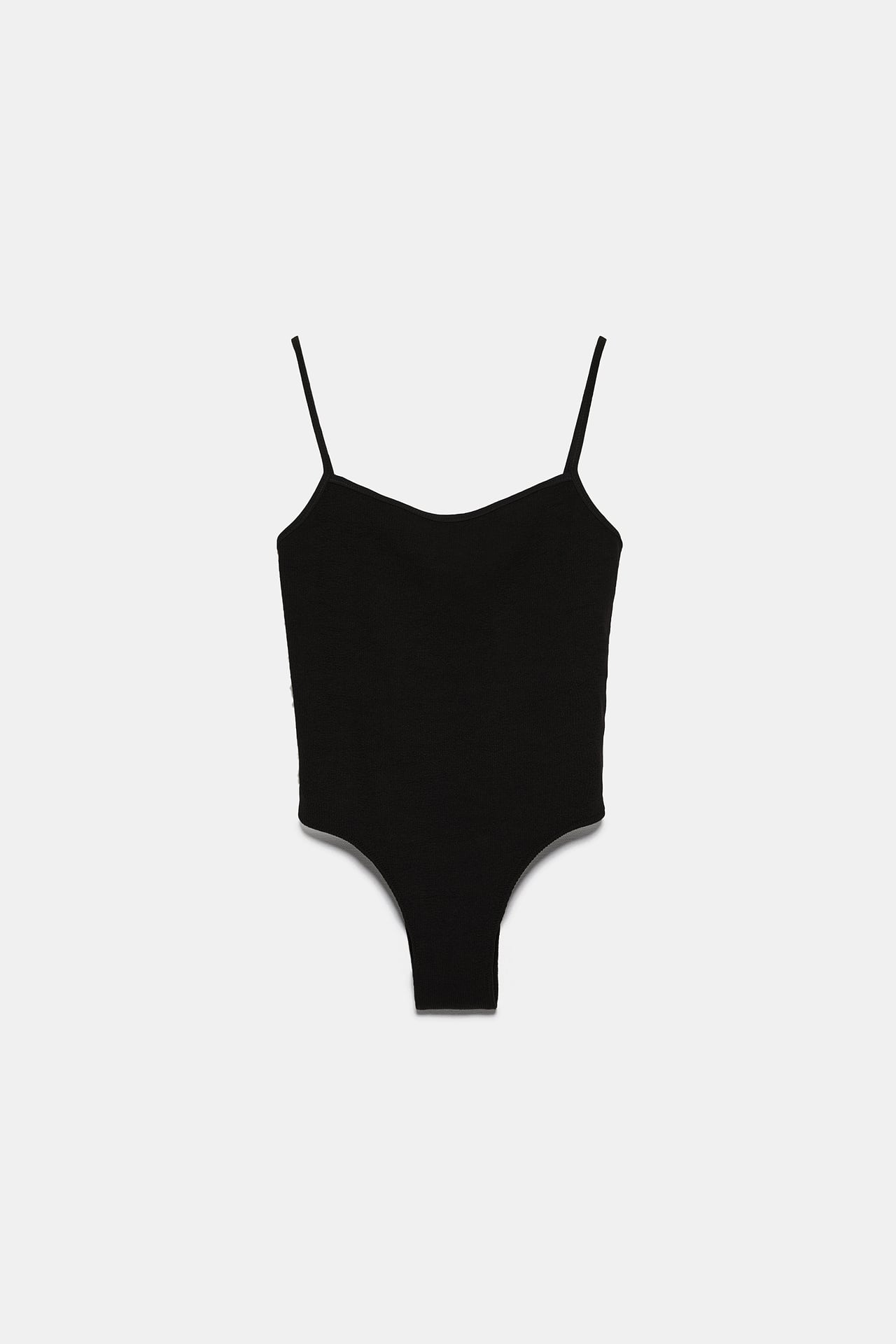 De vuelta a los escotes más recogidos, tenemos este bañador de canalé en color negro. Por lo que se deja ver en Zara, parece ser que el negro va a pegar fuerte este verano, aunque eso no quite que puedas elegir algún diseño más colorido.