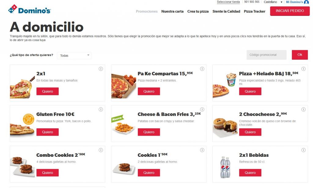 La guerra entre las dos grandes cadenas de comida rápida en formato pizza sigue más vigente si cabe. Si en Telepizza veíamos poco movimiento agresivo y de mantenimiento, Domino’s sí que apuesta más por los productos para compartir y los productos más vendidos en verano para montar sus ofertas de junio. Además de los habituales 2×1 en pizzas y bebidas, incluye también una interesante oferta de pizza más helado que seguro que tienta a más de uno y más de dos. Las pizzas sin gluten también están en promoción en junio.