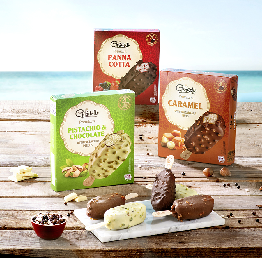 Además de los sabores clásicos, el supermercado alemán ha apostado por sabores nuevos y exóticos, seguramente para competir con Mercadona. Los más destacados son los de la gama Premium, siendo helados de palo de alta calidad.