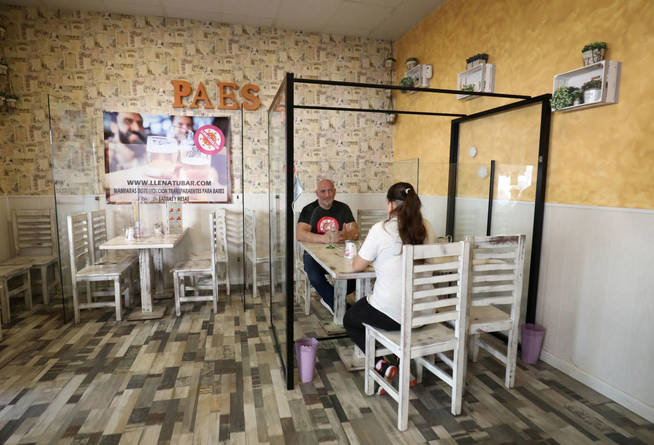 Una vez en la terraza o dentro del local asegúrate que mantienes la distancia mínima de seguridad de dos metros si estás en la barra o entre mesas si estás sentado. Tampoco deberías de ver en barra o mesas elemento alguno como servilleteros, palilleros, aceiteras, vinagreras y saleros. En la barra no deberá de haber alimentos expuestos y sin cubrir. De hecho este punto era ya obligatorio antes de la pandemia aunque en muchos bares no se cumpla.