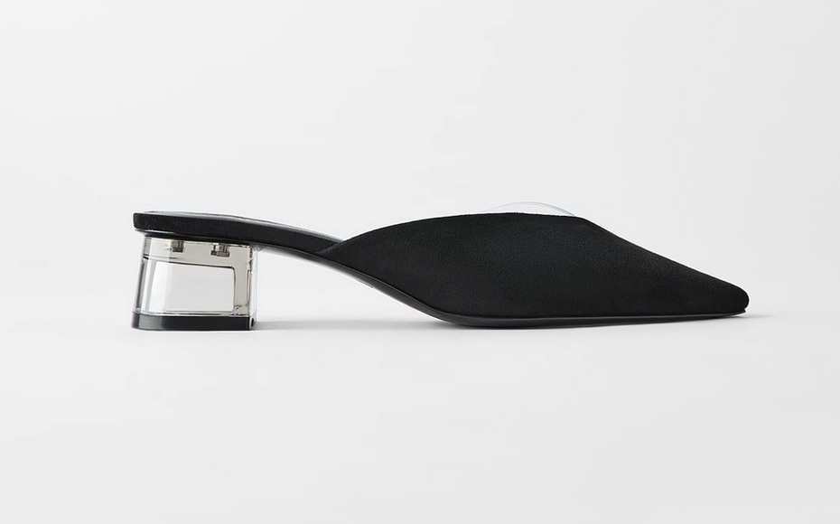 No olvides tus pies, y llévalos a la última con estos zapatos de Zara. Se trata de mule tacón metacrilato, con aspecto bastante moderno y fresco para esta temporada.