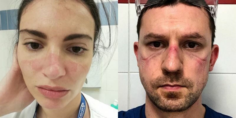 En los días de mayor afectación, todos los médicos y facultativo en primera línea mostraban con orgullo sus cicatrices en forma de marcas y laceraciones provocadas por tener que llevar los elementos de protección durante mucho tiempo y muy seguido. Pero también hay otro factor que explica estas laceraciones: utilizar la mascarilla muy apretada erosiona la piel tanto de las orejas, de la barbilla e incluso de la zona de los pómulos y el arco nasal. El uso adecuado es ajustado para que no deje pasar partículas pero no demasiado prieto para que cause marcas.