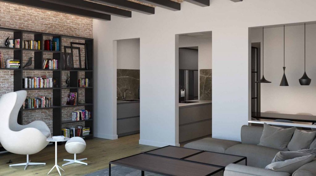 Pese a la remodelación, se ha recuperado el estucado original de la fachada, y se han restaurado las gruesas vigas de madera en los techos altos para resaltar la belleza de los elementos originales, combinado con toques modernos para buscar la perfecta sintonía.